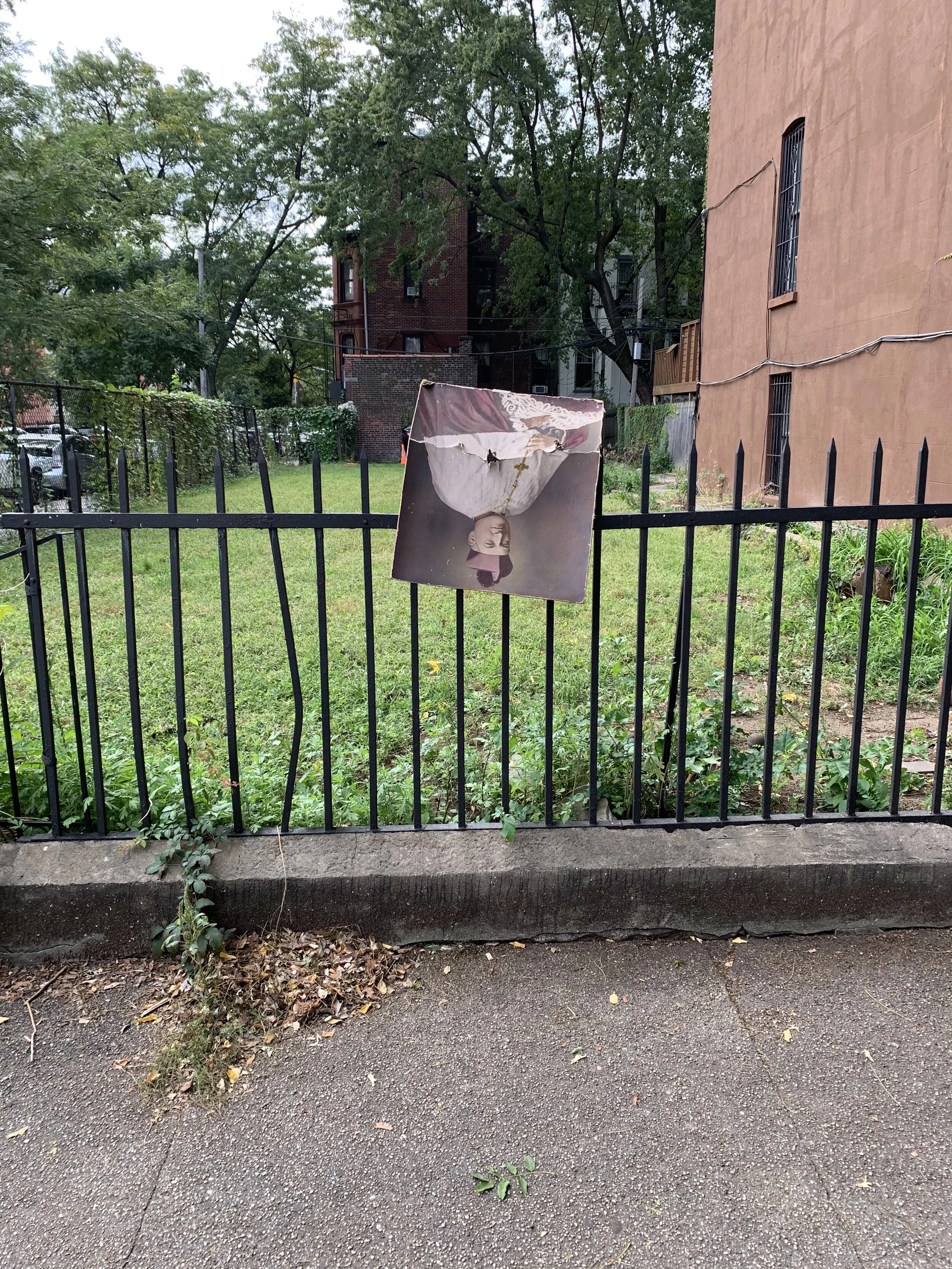 the men around the corner have never not been there in all the months that have come and gone. one night, voices of a crowd posing for photographs. the sounds of joyous celebrations and drinks being passed around. the next day, you notice a color photograph taped to the brick wall around the corner. the wall is shared with the bodega run by a middle-aged muslim man, which closed down for a day or so after the ice agents showed up and hung around. underneath the photograph, dozens of prayer candles arranged on the sidewalk, flower bouquets leaning on the wall. the black man, wearing various shades of blue in the photograph, cannot be more than twenty something. the candles and flowers, too, are shades of blue and white. empty alcohol bottles are scattered just a few steps away. many scribbles on the margins of the photograph. he will be forever missed, they all say, using different words. a while later, another set of photographs go up on other walls around the corner. men are missing, really just boys, boys who have forever had to be men. next to them, other portraits and posters, sprayed slogans reminiscent of the summer.